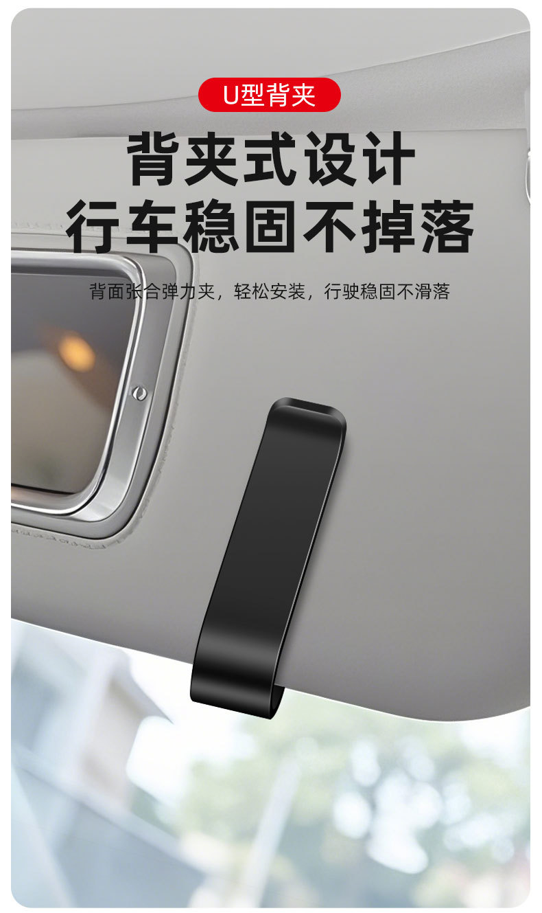 「車載眼鏡夾」夾式設計,不影響行車安全,隱形收納設計,不擋視線,不礙駕駛操作,堅固夾力穩固,夾緊眼鏡不滑落,顛簸路段也安心