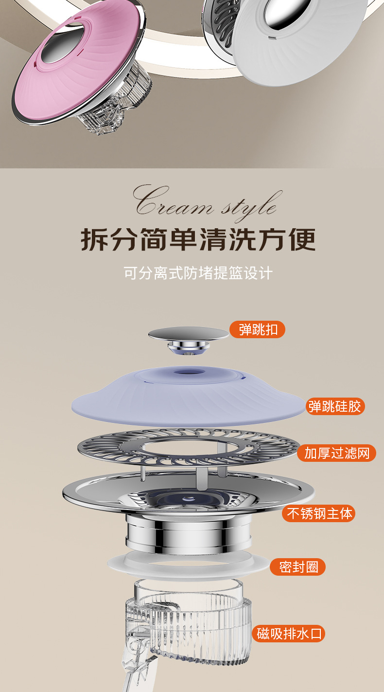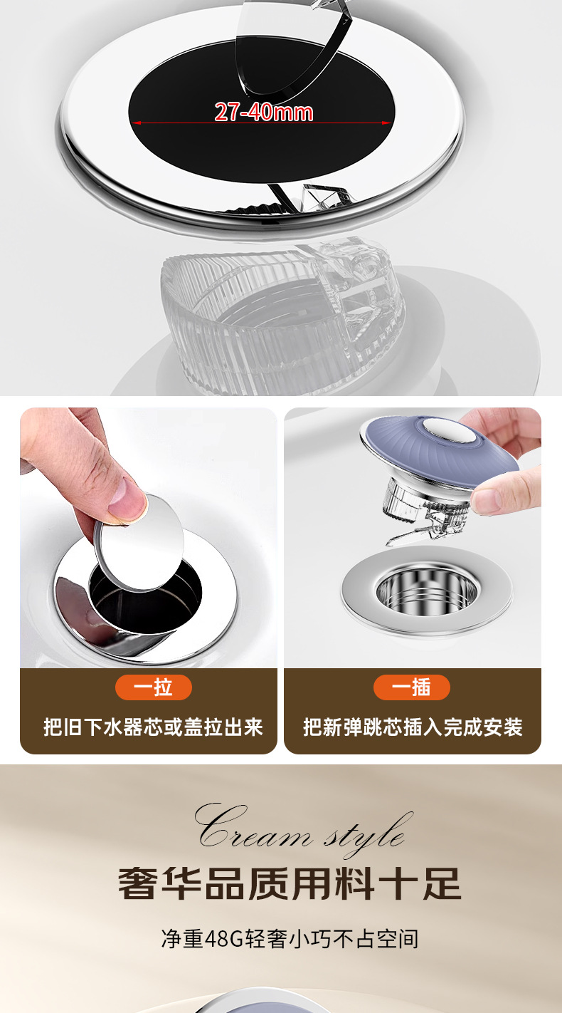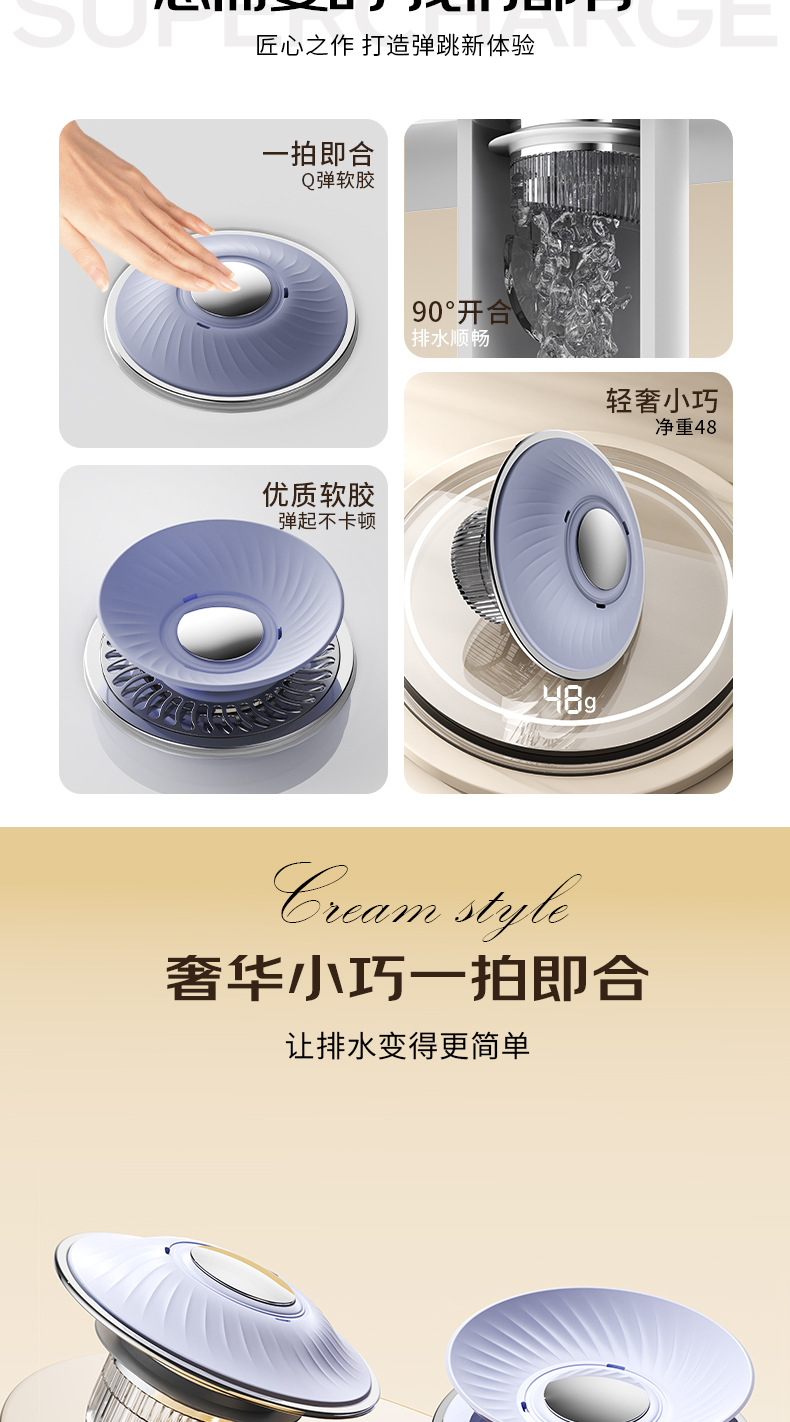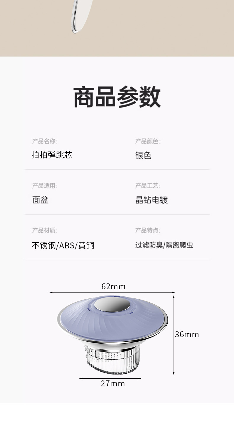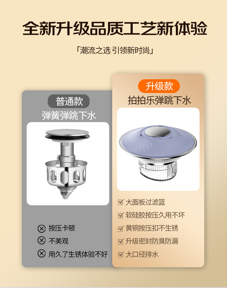 「拍拍樂彈跳芯」按壓彈起,過濾防堵雙在線,按壓彈跳設計,一按蓄水,再按排水,操作零難度,細密過濾網芯,攔截毛髮雜物